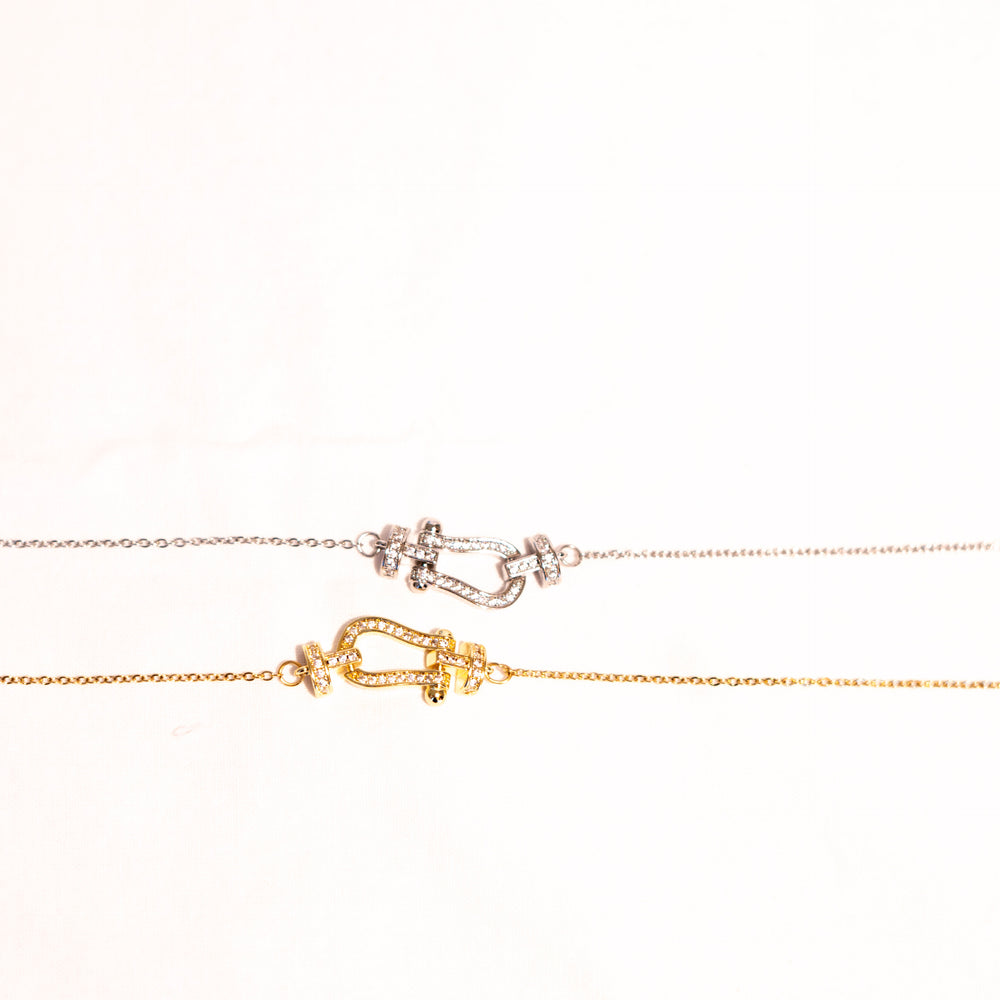 Ce collier délicat se compose d'une fine chaîne en acier inoxydable, ornée d'un pendentif en forme de fer à cheval. Disponible en finitions dorée et argentée, il s'adapte à tous les styles et ajoute une touche d'élégance discrète à votre tenue.
